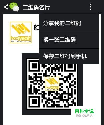 点击生成的二维码名片,这时会弹出一个提示,即分享你的微信二维码名片。 这一步就是保存自己的微信二维码。你可以选择将它保存自己的微博上,或者是QQ空间里。当你将微信二维码保存之后,就可以将它拷贝下来,放到网页上展示,让别人通过二维码添加你为好友。