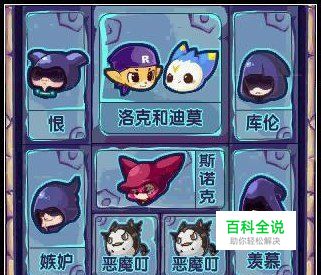 左边中间的恶魔叮,移动成竖排;嫉妒,往右移动一格;羡慕,往右移动一格;库伦,向下移动2格;洛克和迪莫,往右移动一格。