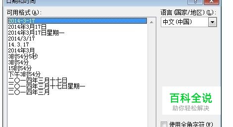 弹出【日期和时间】对话框,在【可用格式】列表框中选择一种日期格式,例如选择【 二〇一四年三月十七日】选项。