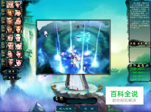 第七步 选择已有角色后点“进入游戏”开始游戏,如果您是首次登录游戏,需要先点“新建角色”来建立一个新角色;
