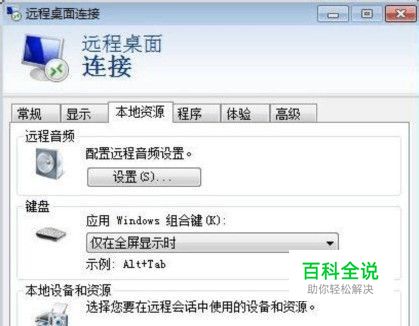 在远程连接时,如果需要和远程计算机进行交互传输文件或互相访问粘贴板数据,请点击“本地资源”,然后在里面设置
