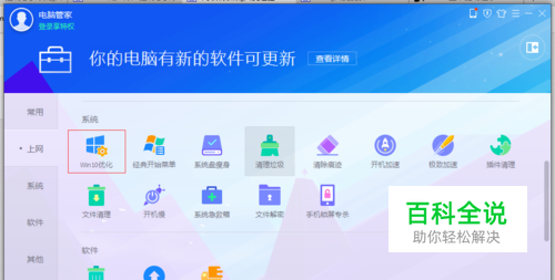打开电脑管家找到工具中的“win10优化”。