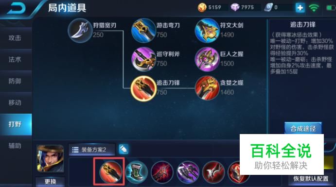 王者荣耀中的刘备最好是打野的形式来玩,那样发育速度会很快,可以快速掌控全场,第一件装备的话,我们可以出追击刀锋,这件装备可以帮助我们快速清野。