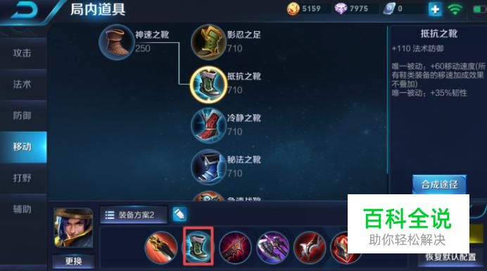 第二件装备我们可以出抵抗之靴,这件装备可以加110的法术防御,意义还重要,一般我们前期抓法师的时候,法术防御还是需要有的。