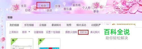 进入你的QQ空间,点“相册”,然后在点“回收站”