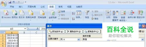 以一串打散的日期为例,选择要排序的区域,点击数据-排序,弹出对话框就可以根据升序或降序排列了。