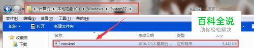 去同版本的windows系统拷贝ntoskrnl.exe文件(目录为 C:\windows\System32\),如图所示: