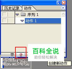 B.在动作面板的下方有6个按钮,从左往右分别是:停止录制动作、开始录制、播放动作、建立组、新建动作和删除动作.点击第五个开始建立一个新的动作,弹出一个对话框,你可以对这个动作进行命名默认为动作1(这时候,第二个按钮应该是红色的圆点)。