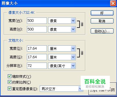 3.设置两个地方:一是要勾选“重定像素”,并把插补方法设定为“两次立方”,