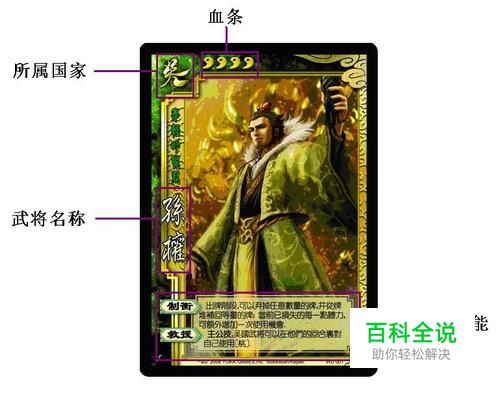人物技能详解 刘备 仁德:出牌阶段,可以任意地把手牌分发给其他玩家(可以全给一个人,也可以分别分发给几个人若干张)。其他玩家获得后加入手牌。每分发出两张手牌刘备加一点体力。不足两张的,不加体力。 给一个人,也可以分别分发给几个人若干张)。其他玩家获得后加入手牌。每分发出两张手牌刘备加一点体力。不足两张的,不加体力。 例如,刘备发给关羽张飞诸葛亮各一张牌,给孙尚香两张牌,一共给出五张,因此刘备共可以补充两点体力。 主公技:刘备可以在需要出杀的时候,要求(但不强制要求)其他蜀国玩家帮他出杀。 主公技就是指只有在玩家为主公的时候可以使用的技能 关羽 武圣:需要出杀时,可以用任意红色花色(红桃、方块)的手牌或已装备的装备牌代替杀使用。 张飞 飞将:出牌阶段,可以出任意数量的杀。仍可以装备武器后增加攻击距离。 诸葛亮 观星:摸牌阶段前,查看牌堆顶的三张牌,将其中任意数量的牌以任意顺序置于牌堆底,其余 以任意顺序置于牌堆顶。摸牌阶段照常摸两张牌。 空城:无手牌时,不受杀的影响(包括决斗中出的杀)。 赵云 龙胆:可以用杀代替闪使用,也可以用闪代替杀使用。 马超 马术:始终视为骑着一匹-1马和一匹+1马,不管他是否装备马。但他最多只能再装备一匹马(算上自己始终骑着的两匹马一共三匹)。 黄月英 集智:当她使用一张锦囊牌后,立即从牌堆顶摸一张牌加入手牌。 奇才:使用任何锦囊牌无距离限制,如顺手牵羊。 若月英使用如万箭齐发等锦囊牌后对司马懿造成伤害,则月英应先从牌堆摸一张牌,再让 司马懿抽走一张 孙权 制衡:弃牌阶段,如果当前手牌数量小于当前体力值,可补充手牌到当前体力值;也可以在弃牌阶段主动弃掉任意张手牌(正常情况下不能主动弃牌),然后补充手牌到当前体力值(此时补充的手牌不得立即使用)。一回合只能使用一次。 主公技:可以要求(但不强制要求)吴国的角色在他们各自的回合给孙权一张手牌。 甘宁 铜铃:任何时候可亮出自己的身份牌,亮出后体力上限和当前体力值各加一。一局游戏中只能使用一次。 例如:当他只剩一点体力,受到杀的攻击且躲避不过时,他可以选择亮出身份,则当前体力值加一(加一后仍为1),体力上限也加到5.若体力值加一仍不足以弥补受到的致命伤害(如闪电),则天命难违矣。。 甘宁不能当主公。(选人时若主公玩家的备选牌里有甘宁,则随机再抽一张加入备选角色,将甘宁放回角色牌堆。 吕蒙 克己:若在出牌阶段没有打出杀(包括决斗中使用的杀),则弃牌阶段无需弃牌,即此回合手牌无上限。 任何时候,忘了使用角色技能或游戏牌的能力,都过期作废哦 黄盖 苦肉:出牌阶段,可主动减一点体力,从牌堆两张牌。在自己回合可以多次使用该技能。 但若自己仅剩一点体力,则不得使用此技能,即便自己手里有桃 周瑜 英姿:摸牌阶段摸三张牌(并非额外摸三张) 借刀:出牌阶段,可强制向一名玩家借用一张已装备的武器牌(如同锦囊牌借刀杀人的效果)。一回合只能使用一次该技能。 大乔 国色:出牌阶段,可将任意方块花色的牌横放在目标玩家面前,当作乐不思蜀使用。这张牌发挥与乐不思蜀同样的效果,也可被无懈可击取消。 流离:任何时候,受到杀的攻击时(不包括决斗时),可弃一张牌,将这张杀的攻击对象转移给自己攻击范围内的一名玩家(这名玩家不得是攻击者 本身) 陆逊 谦逊:不受顺手牵羊和乐不思蜀的影响。 连营:任何时候,只要自己手里没牌了就能从牌堆里摸一张加入自己手牌中。 若陆逊打出手里最后一张杀扣减了司马懿一点体力,此时应由陆逊先摸一张牌,而后让司马懿把这张牌拿走。 曹操 奸雄:可立即获得所有对自己造成体力伤害的牌。包括杀、决斗、万箭齐发、南蛮入侵、闪电 和部分角色用来代替这些牌的牌,但不包括决斗中双方出的杀。 牌。包括杀、决斗、万箭齐发、南蛮入侵、闪电,和部分角色用来代替这些牌的牌,但不括决斗中双方出的杀。 主公技:任何时候,曹操可以要求(但不强制要求)魏国武将帮曹操出闪。 司马懿 反馈:若有玩家对自己造成体力伤害,随机抽取对方一张手牌,加入自己的手牌。若此时对方无手牌,则此技能无效。 鬼才:在任意玩家(包括自己)的判定牌翻开后,可立即从手里打出一张牌,将这张牌作为新的判定牌,并以这张牌上的花色作为判定结果。将原来翻开那张判定牌弃掉。 若司马懿对郭嘉使用鬼才,则郭嘉将司马懿打出的用来做判定牌的牌收入手牌。 夏侯敦 刚烈:当有玩家对夏侯敦造成体力伤害时(包括使用万箭齐发和南蛮入侵),这名玩家需要立即进行判定,若判定结果为黑色花色(黑桃、梅花),则这名玩家需减一点体力或者弃两张手牌(若没有手牌或手牌不足两张,则只能扣减一点体力) 张辽 突袭:摸牌阶段,可选择不摸牌,而是从一到两名玩家手里各随机抽取一张手牌加入自己手牌(若只剩一名其他玩家时,则只能从一名玩家手里抽走一张,总共只能获得一张手牌) 许褚 裸衣:出牌阶段,如果自己没装备武器牌,用杀攻击成功后(不包括决斗),对方受到两点体力伤害。 郭嘉 天妒:可将所有自己的判定牌加入自己的手牌。包括司马懿用于改变判定结果的牌。 遗计:自己每受到一点体力伤害,就能从牌堆摸两张牌,将这两张牌交给包括自己在内的任意一名或两名玩家。 甄姬 洛神:判定阶段可以主动进行判定,若判定结果为黑