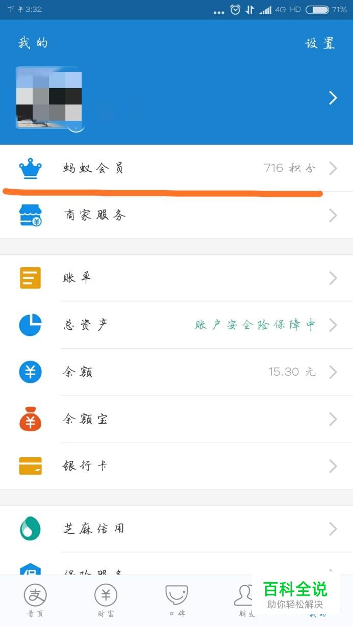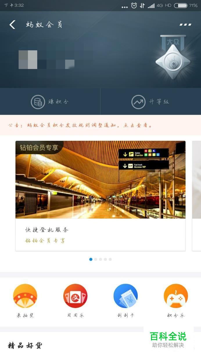然后会进入蚂蚁会员的页面,你把该页面下拉寻找
