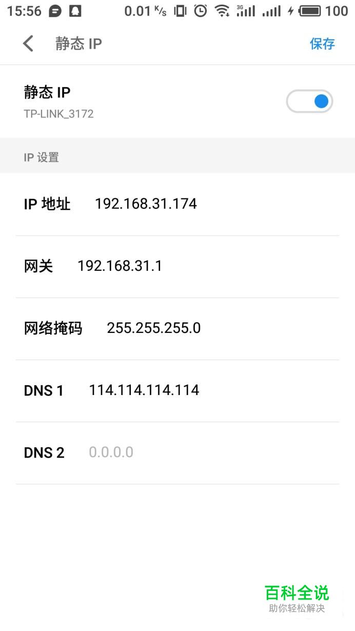 滑块开启之后,将下方的DNS1修改为“114.114.114.114”,点击“保存”即可。