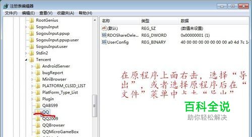 备份原程序的注册信息,保存在非系统盘,方法是:“开始”--“运行”--输入“regedit.exe”--在弹出的注册表编辑器中进行图示的操作。这一步是为了重装系统后导入已经导出的注册表信息。【注意!!:见文尾】