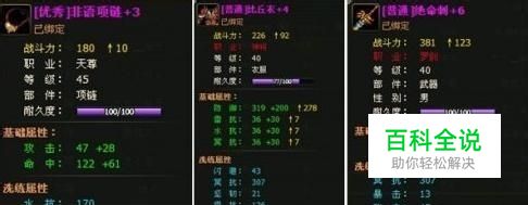 大家可以看到,以上装备都是平民装备,强化在3-5之间,前缀均为普通,最高的也就是优秀,相信这样的装备非RMB得到不是很难吧,但是加的战斗力却是不少,为什么呢? 原因在于装备洗练,因为非RMB我们强化只能在1-5之间,再往上就只能破财了。但是洗练却能让我们很好缩小与RMB玩家之间的区别,同一个装备洗练越多,那么洗练出来的起点就越高,但是洗出什么属性才是对非RMB最好呢。 装备洗练有一个极品预览那便是最好的洗练属性(那是对于超级富N代来说的),对我们非RMB来说洗练应该遵守这几点: 一:洗练属性最多(一般紫装装备为5个,蓝色为三个。)一般建议出5个 二:洗练出来的颜色最高(绿,蓝,紫,橙)一般建议洗出蓝色 以上。 三:洗练的等级最好(如武器洗出攻击,暴击,命中,防具为气血,防御,闪避最佳) (PS:装备强化以及宝石为千篇一律,暂时不提)
