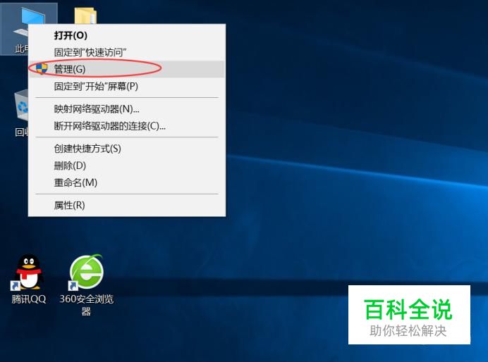 首先,右键此电脑,有的电脑名字叫计算机之类的,打开管理,如图所示,进入到管理界面。