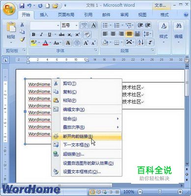 怎样在Word2007文档中断开文本框链接