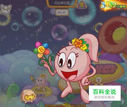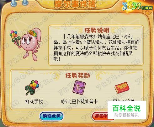摩尔庄园神圣的鲜花手杖攻略完成,xixi得到了鲜花手杖,5张比巴卜花仙普卡和比巴卜泡泡糖。