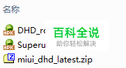 准备一张剩余空间大于100MB的MicroSD/TF卡,将刷机工具包dhd_tools.zip解压至电脑桌面。解压后解压工具包 copy_to_sd密码为miui,将其中解压出所有文件拷贝到SD卡根目录下。不要解压MIUI ROM安装包,将其直接拷贝到SD卡根目录下。最终SD卡根目录包含如下图所示文件。