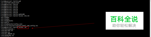 2 更新过数据库后,搜索etc目录下所有以 sh开头的文件 输入命令: locate /etc/sh 得到结果: