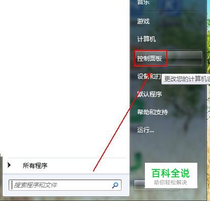 单击电脑桌面左下角的win图标,在弹出的菜单列表中单击“控制面板”选项。