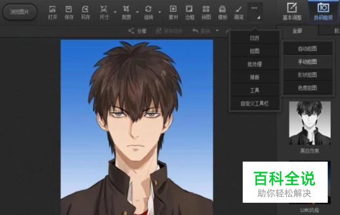 打开光影魔术手,打开照片。点击更多的下方子菜单,抠图,点击自动抠图。