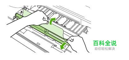 小心为防止损坏打印碳粉盒,请勿将其暴露在日光下超过数分钟。 2. 打开金属板,然后慢慢地将介质拉出设备。 请小心操作,以免撕裂介质。