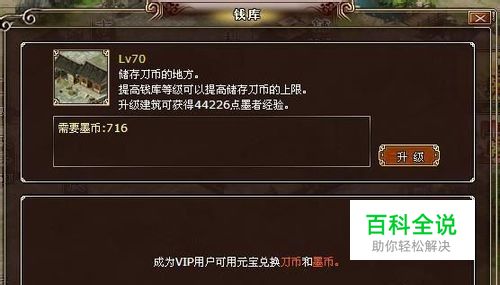 成为VIP可以在钱库用元宝兑换刀币和墨币,能更快捷地升级和打造装备等等。VIP等级越高,可兑换的次数越多。