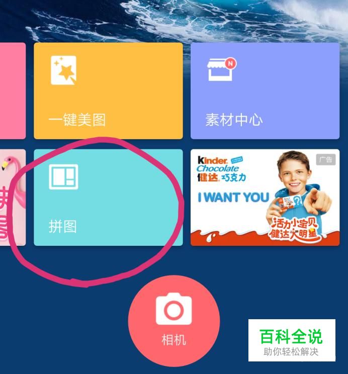 进入美图秀秀,第二页有一个拼图选项,点击进入