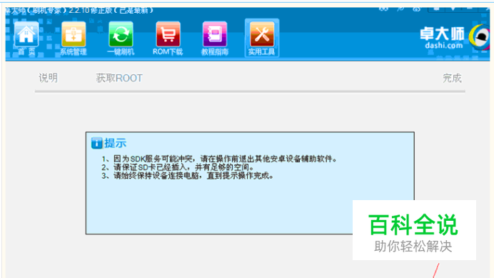 步步高VIVO S7是一款样式十分漂亮的一款手机,这款手机在出厂的时候都会内置很多系统应用程序,要想彻底删除,就需要对手机进行root权限破解了,下面就为大家带来详细的步步高vivo s7的root教程 准备工作:下载卓大师,并且安装到电脑上 1,打开手机usb调试,可以通过查看安卓手机usb调试打开教程。 2,打开卓大师,使用数据线把手机和电脑相连接,并确保其它安卓管理工具类似腾讯手机官家已经关闭 3,按照下面方法,点击实用工具找到一键ROOT,点击一键ROOT,在ROOT过程中,你的手机会重启两次 4,成功后,还有很重要的一步,因为现在手机还很卡。还是要用卓大师进行深度清理。点一下系统管理,就会出现扫描。刚开始扫描了2次还是不能成功。然后就关掉卓大师,重新启动。终于出现了可以清理了。在清理又有了一点小问题,卓大师显示重启时,很长时间了还没动静。只好在手机上轻按开关键,进行重启,终于全部成功了。 5,成功获取ROOT权限之后,如果你手机是行货的话,这时候是不保修的,如果你想恢复的话建议格式化手机即可