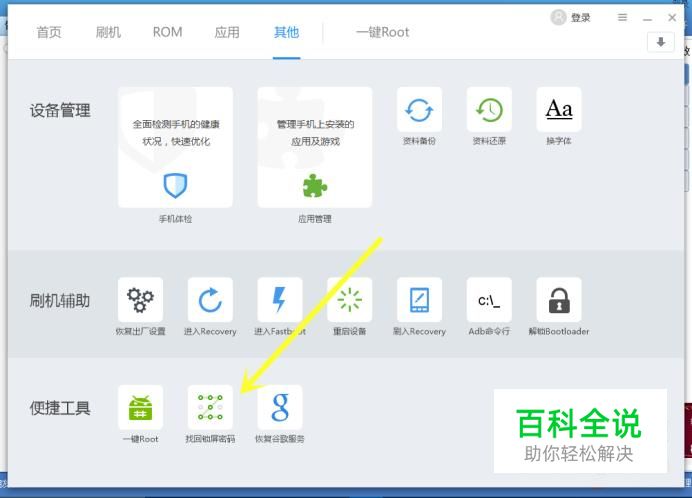 在其他面板的底部有 找回锁屏密码 的选项,我们点击即可找回手机锁屏密码。