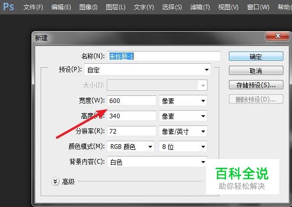 新建一个文档,我们将宽度和高度调整到合适的大小。