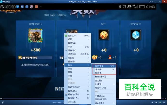 除了截图,QQ影音还有其他播放所没有的剧情连拍功能。 留下你的王者时刻吧! 右键播放器界面,选择剧情连拍(Alt+S)。