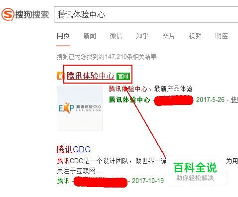 在搜索结果中找到并打开“腾讯体验中心”的网站。