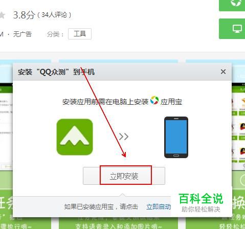 在腾讯官方的应用宝里点击“安装到手机”选项