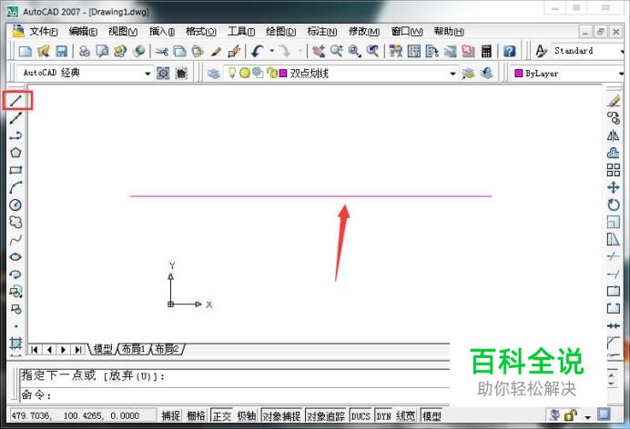 然后使用直线指令画出一条长度适中的双点划线,如图所示。
