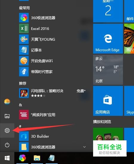 点击桌面左下角的开始按钮,选择设置。