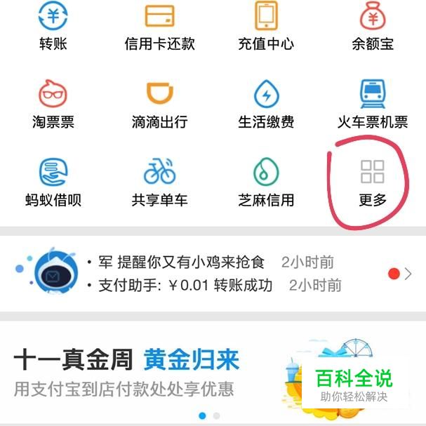 在支付宝的主页面,应用里找到更多,如图所示,点击进入