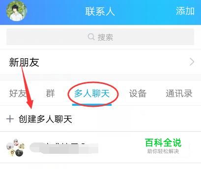首先我们需要先准备好一个小号,然后在联系人页面中点击“多人聊天”,点击里面的创建按钮建立多人聊天。