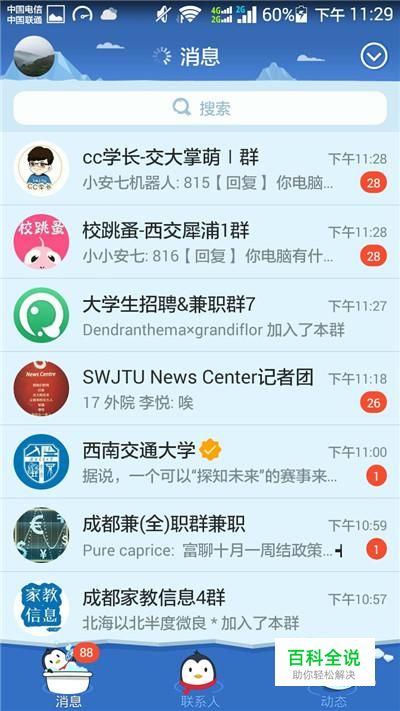 进入到QQ之后,找到我们想要下载文件的那个群,如果在消息页面找不到的话,就去联系人页面找,喵君在这里就随便找了一个文件比较多的群。