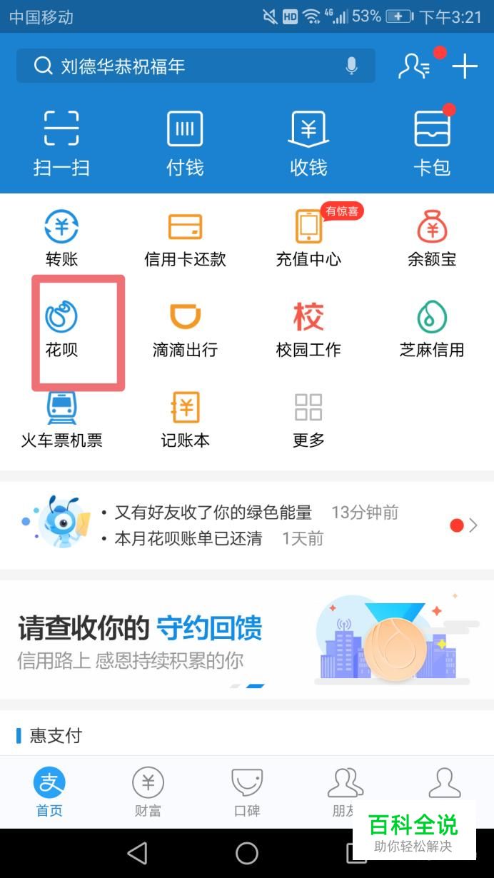 首先打开支付宝找到花呗,打开花呗,里面会显示使用了好多,剩余额度为多少,打开剩余额度。