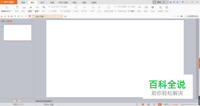 首先,我们打开我们的PPT后,这时我们就可以看见我们有一页空白页的PPT在主页上。