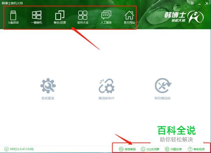 进入韩博士装机大师主界面之后,可以看到韩博士装机大师主要有哪些功能,主要常用的会有U盘启动-一键装机和备份还原功能,每个功能都不尽相同,今天就来看看一键装机功能