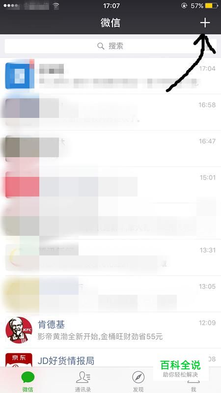 点击右上角的加号。想觉得微信被拉黑的方法,其实可以点击右上角的加号,然后进行设置。