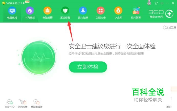 进入到360安全卫士界面后,点击“系统修复”