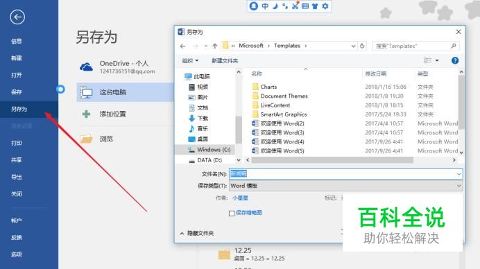 在弹出的“另存为”对话框中,选择自己想要保存的路径,例如我们选择“C盘”,然后在文件名中,更改文件名称;在保存类型中,选择“PDF”,然后点击“保存”。