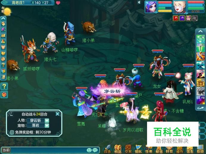 第一关,其中输出伤害到两边的小怪上,有封印门派把狐狸封印。总之,第一关非常简单,集中输出就可以轻松过关了。