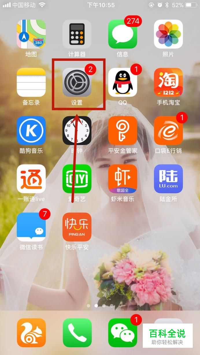 首先在我们的手机桌面上找到设置,并点击它,如下图所示。