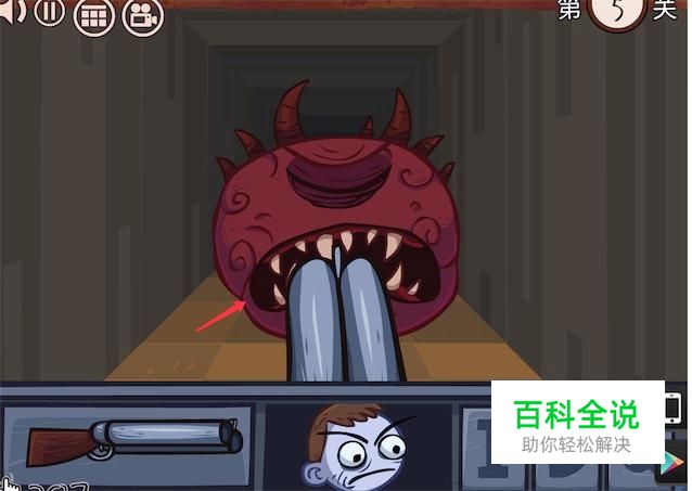 这时我们再点击枪向着怪物头开枪,一枪过后,怪物头变傻笑了。
