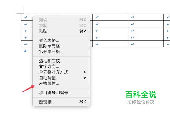 在表格上右键,然后点击‘表格属性’