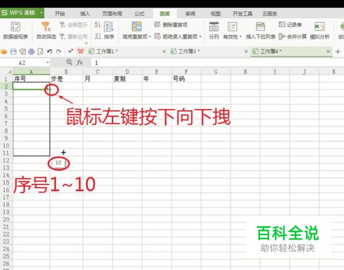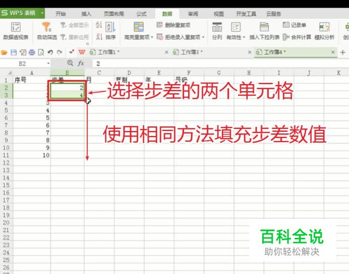 此时我们可以看到,结果就是等差的1的序号填充了。 你可根据需要,填充步差3(也就是2、5、8、11)等。